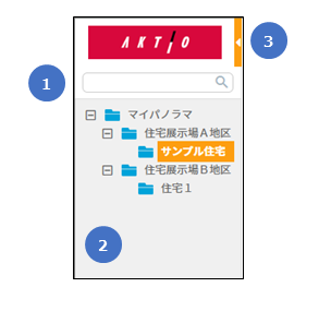 | 3. 閉じるボタン | フォルダ一覧を閉じて、シーン一覧を最大化することが出来ます。 |