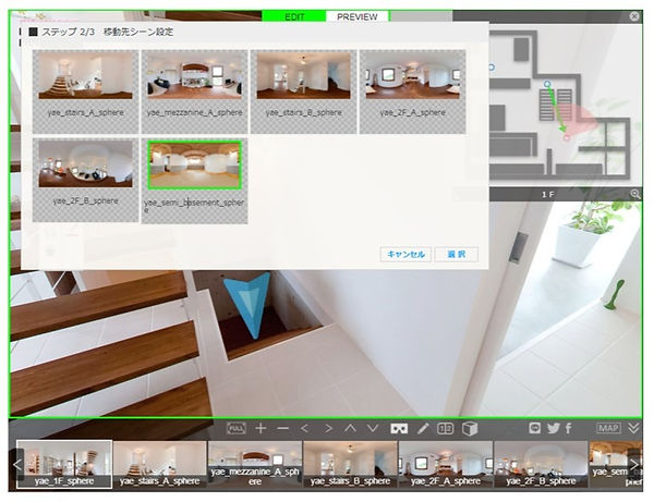 ツアーカーソルをクリックすると、シーンの移動を確認することが出来ます。
