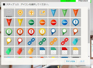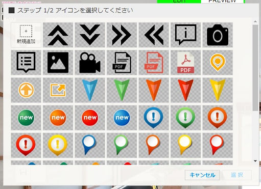 位置を指定すると、アイコン選択ダイアログが起動します。
