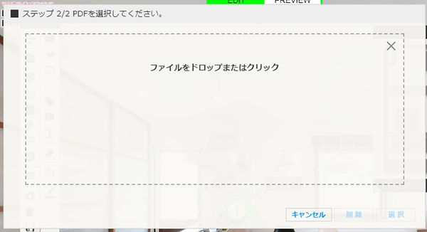 アップロードしたいPDFファイルを枠内にドラッグ&ドロップしてください。