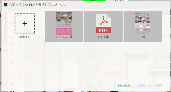 アイコンクリックで表示させたいPDFを選択し、「選択」をクリックしてください。